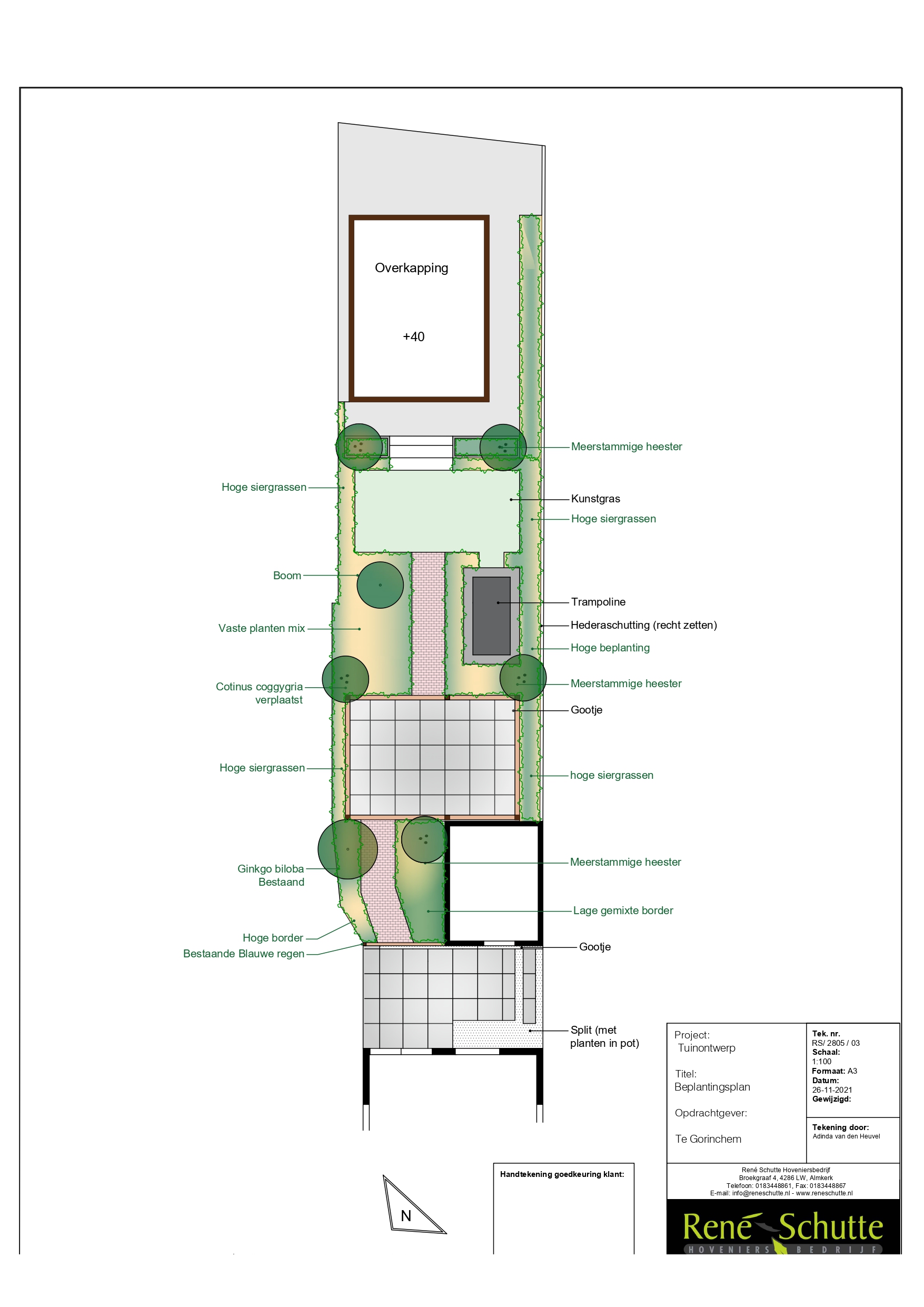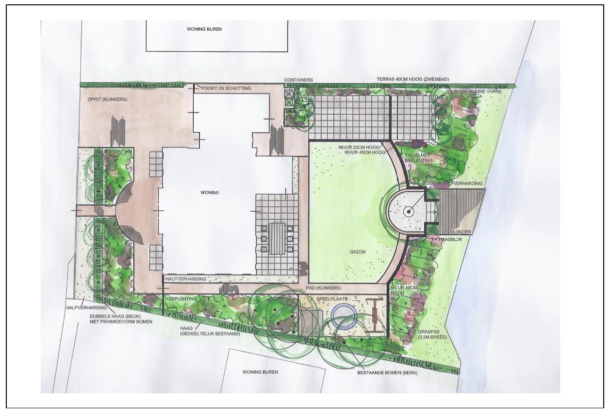Een uiteindelijke tekening met daarop alle beplanting/bomen en aantallen vormt het beplantingsplan waarmee u of wij aan de slag kunnen.