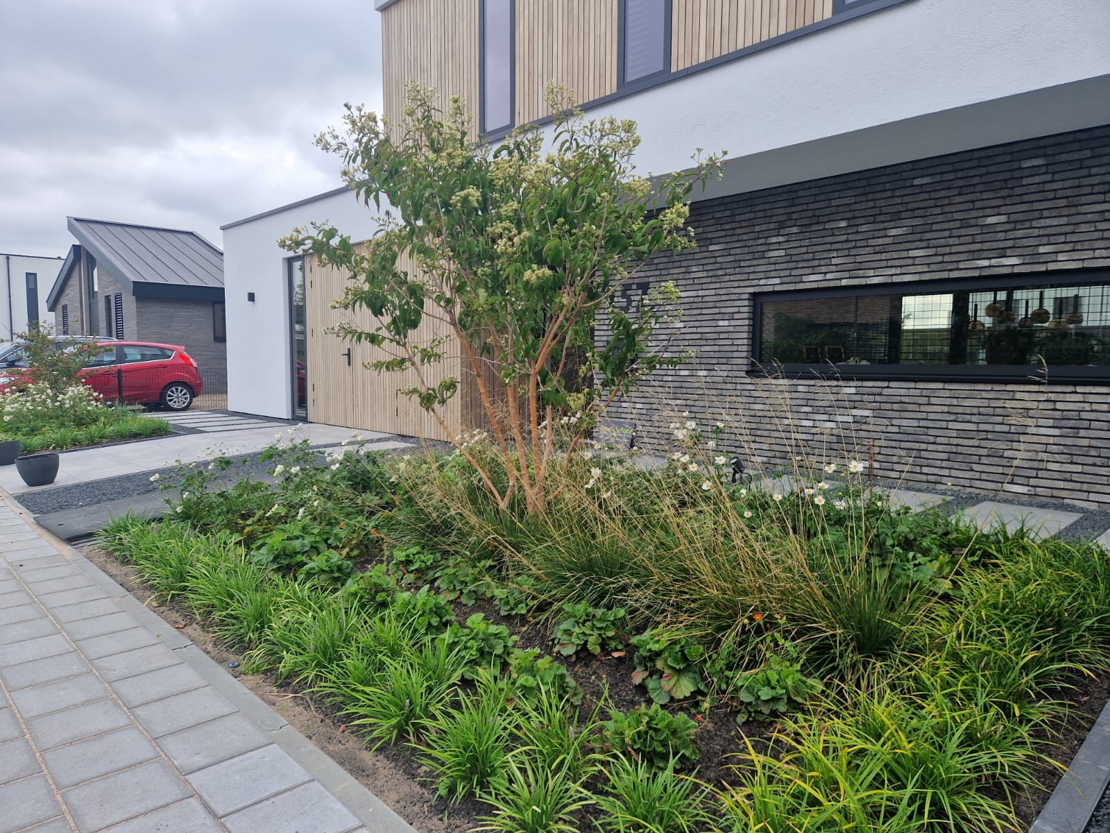 Bij het beplantingsplan is er voor het gebruiken van diverse soorten siergrassen met vaste planten. Siergrassen geven de tuin een natuurlijke uitstraling en hebben (bijna)een jaarrond sierwaarde. Door het gebruiken van grote groepen beplanting is het ook nog eens onderhoudsvriendelijk.