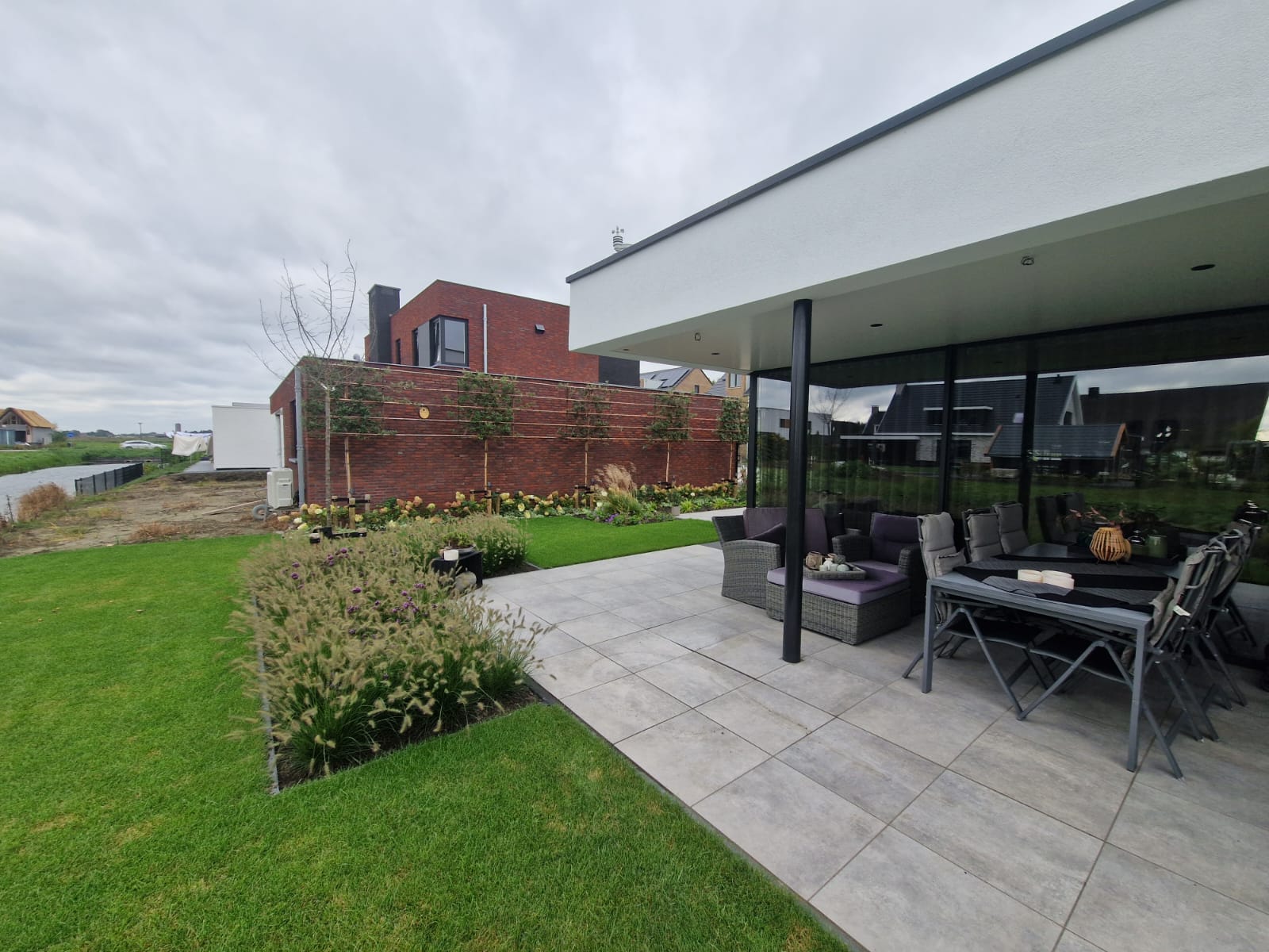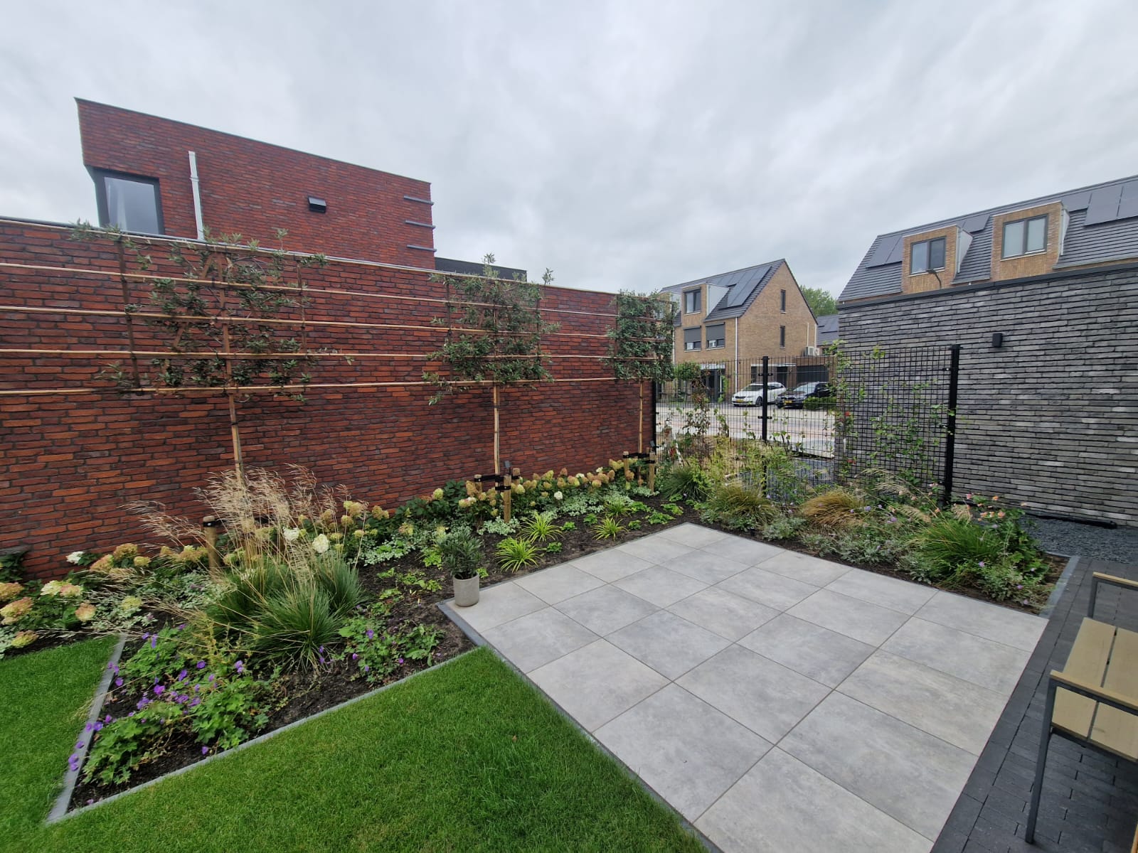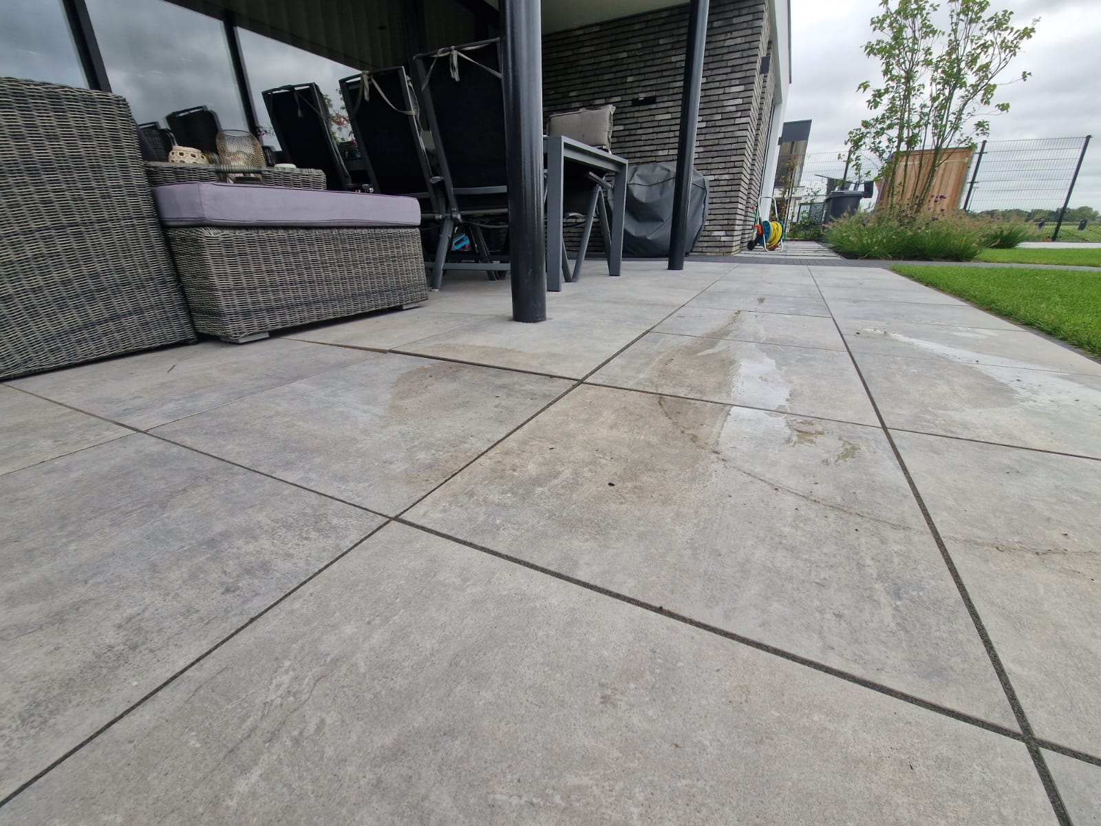 Er is gekozen voor de GeoCeramica Evoque Greige tegel. Een keramische tegels met een subtiel vleugje betonlook erin verwerkt. Voor het pad is er de GeoCotto Nero betonklinkers gebruikt. Deze betonklinker is maatvast, enorm sterk en voorzien van de hoogwaardige GeoSteen toplaag met de Protection Plus Factor 25. Een moderne en duurzame steen.